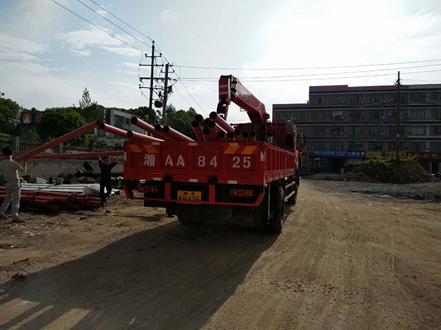 長(zhǎng)韶婁岳麓收費(fèi)站隨車吊做最后信號(hào)燈安裝